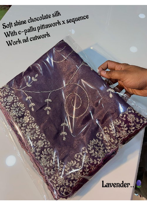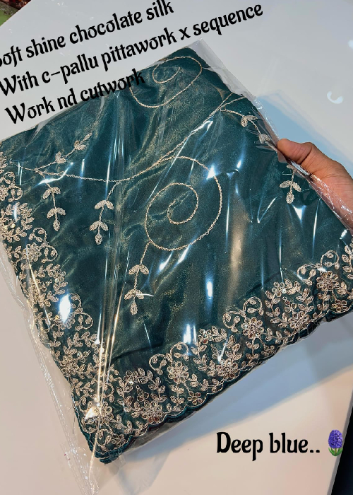 ✨ Add timeless elegance to your wardrobe with our New Latest Collection Chocolate Silk Saree. Made from soft-shine premium chocolate silk fabric, this saree is beautifully adorned with heavy C-pallu pitta work, intricate zaal work, 2mm sequin detailing, and designer cutwork for a luxurious finish.