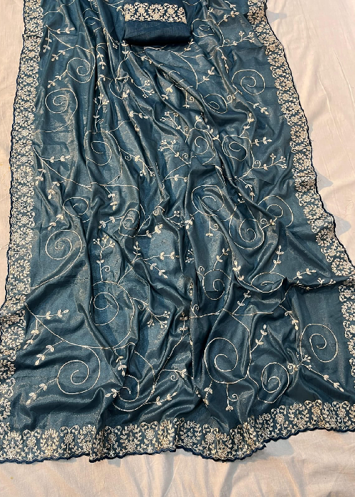 Comes with a matching heavy mono blouse (unstitched) with exquisite embroidery, giving you the perfect designer touch.